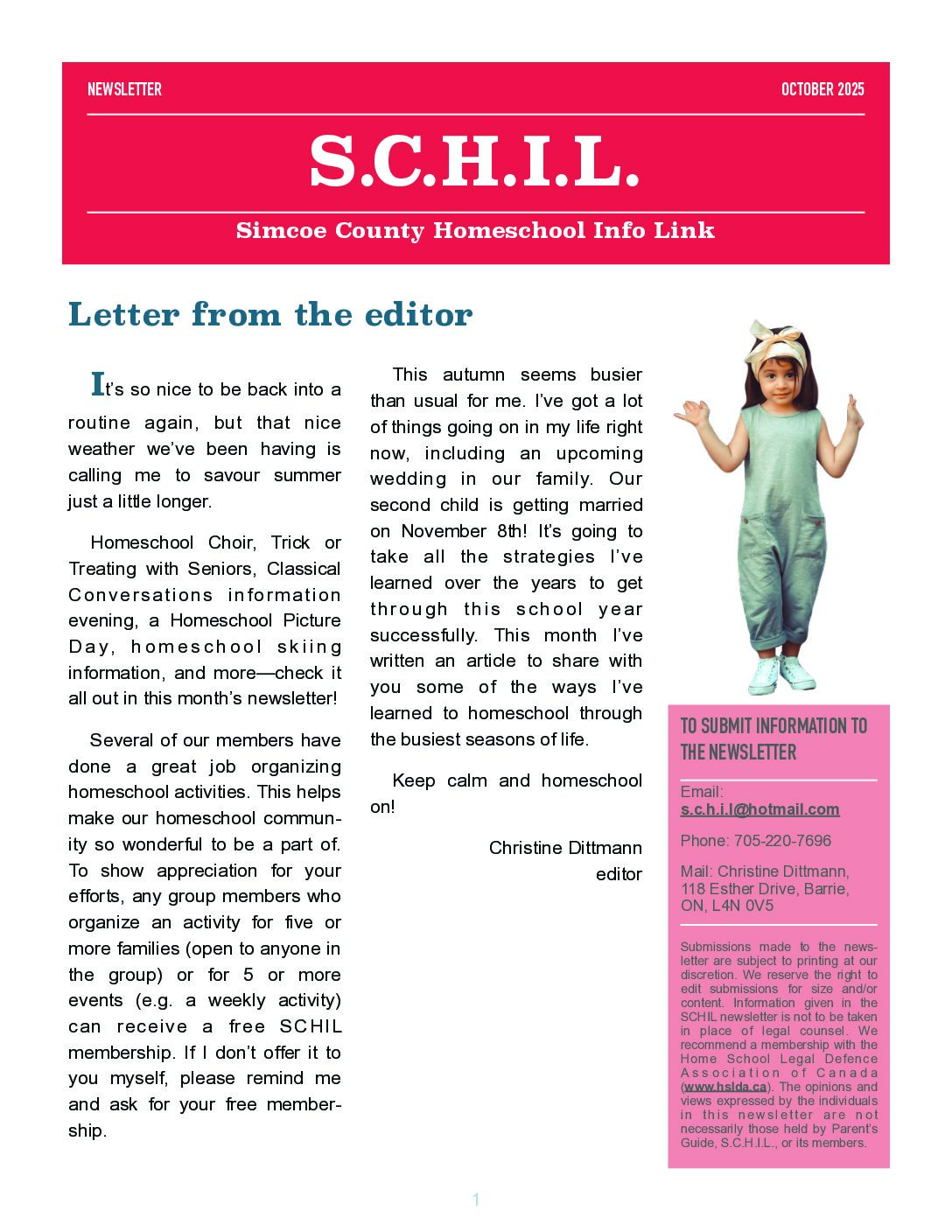 Welcome to the Simcoe County Homeschool Info Link—SCHIL!