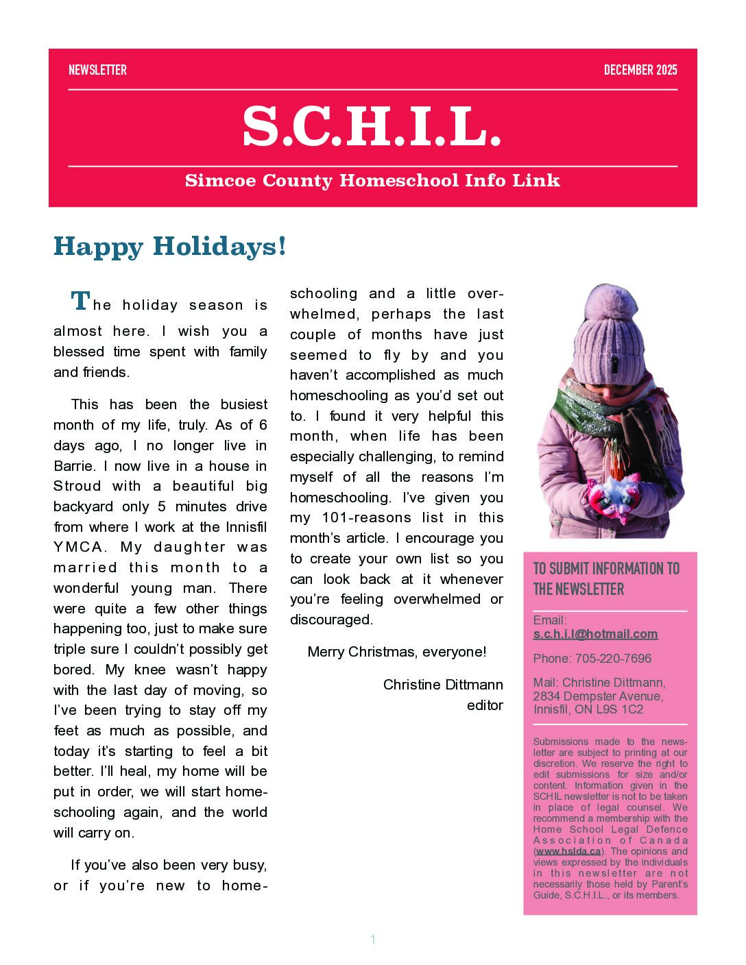 Spring is just around the corner–although winter does seem to be keeping a good grip on things lately! Two things I always look forward to in the spring is the Barrie New & Used Book and Curriculum Sale, and the OCHEC Homeschool Conference. In this newsletter, you’ll find an article about language learning in the homeschool.